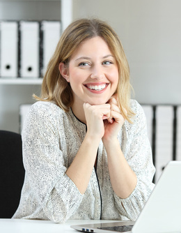 Proud office worker posing looking at side
